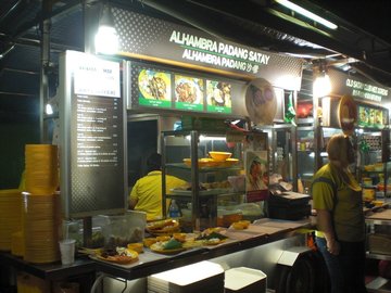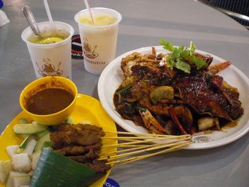 。大牌檔座落海邊,並且以露天茶座為設計,晚間涼風陣陣,通爽非常,本來原意是選取露天木條長桌,但突然下大雨,就只好選了有大陽傘遮風擋雨的座位,感覺沒有那麼好。食物分別試了3個小攤檔,包括「水安煮炒」的黑胡椒蟹、「Alhambra Padang」的沙嗲、「The Gluttons Bar」的檸檬甘蔗汁、洋桃西芹汁。黑胡椒蟹,一份有兩隻蟹,不過便宜的價位,就明白不可能是厚肉的斯里蘭卡蟹,老闆亦很老實說明是本地蟹,勝在新鮮肉甜,而且檔前有齊「樣辦」,童叟無欺。雖然蟹沒有太多肉,但正如老闆所言,肉質非常之鮮甜,而且黑胡椒炒得既香且惹味,食至吮罷手指上的醬汁才罷休