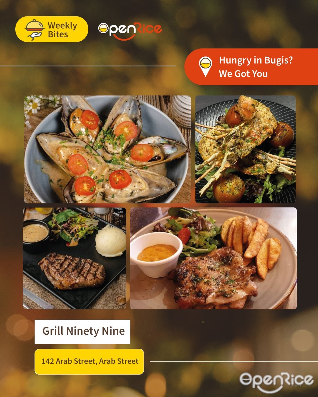 Located just a short walk from Bugis MRT, Grill Ninety Nine is a halal-certified Western fusion restaurant that’s perfect for meat lovers and cafe hoppers alike. The interior blends rustic charm with modern touches, creating a laid-back yet elegant dining space. Guests rave about their juicy steaks, lamb shanks, and freshly baked pizzas, all made with premium ingredients. Whether it’s a casual lunch or a dinner date, Grill Ninety Nine is a crowd-pleaser in Bugis.