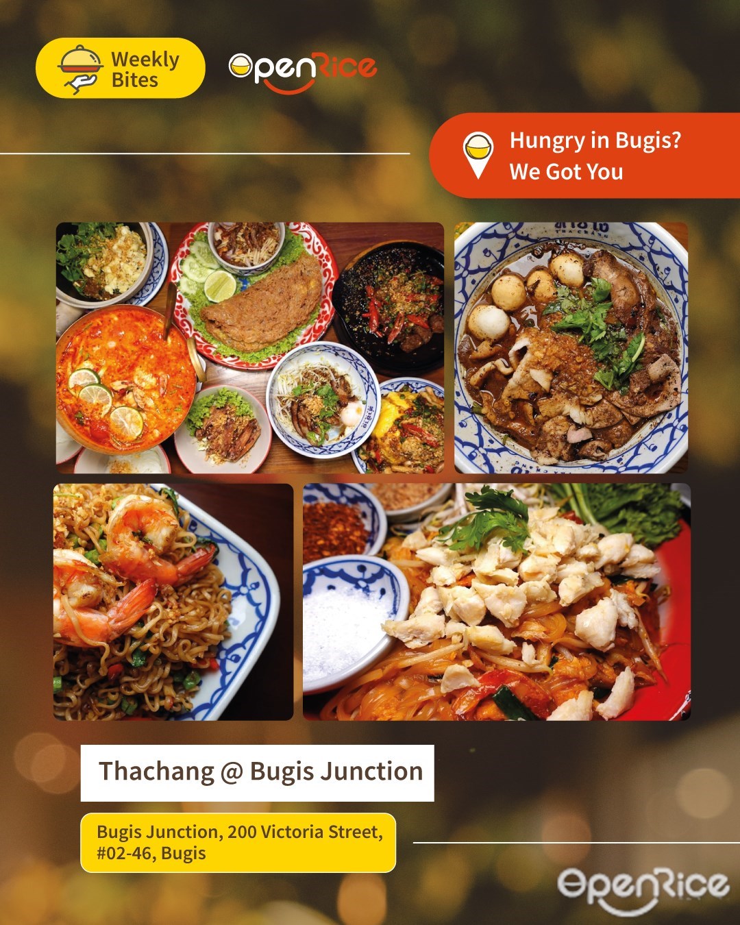 Thachang at Bugis Junction brings the vibrant flavours of Thailand to your table. Known for its bold and aromatic dishes, this eatery captures the essence of Thai street food while maintaining a cozy indoor vibe. From comforting boat noodles to tangy seafood and perfectly crisp pork belly, every plate bursts with balanced spice and zest. It’s a go-to spot for anyone craving authentic Thai comfort food right in the heart of Bugis.