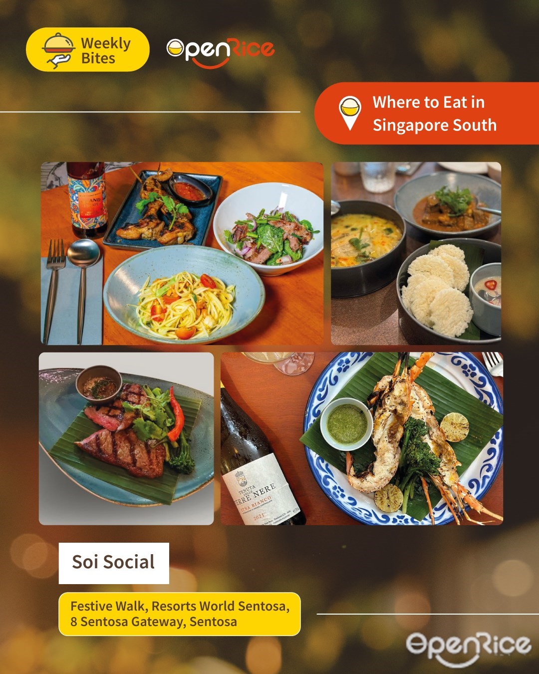 Soi Social is a vibrant Thai dining destination at Resorts World Sentosa, inspired by the renowned Chef Ian Kittichai. The restaurant beautifully balances the sweet, sour, salty, and spicy notes that define Thai gastronomy. With its lively atmosphere, it’s ideal for gatherings, celebrations, or simply indulging in bold flavours that transport you straight to Bangkok’s bustling streets. The menu is carefully curated, highlighting signature Thai dishes made with finesse and flair. At Soi Social, every meal is a culinary journey bursting with authenticity and modern creativity.