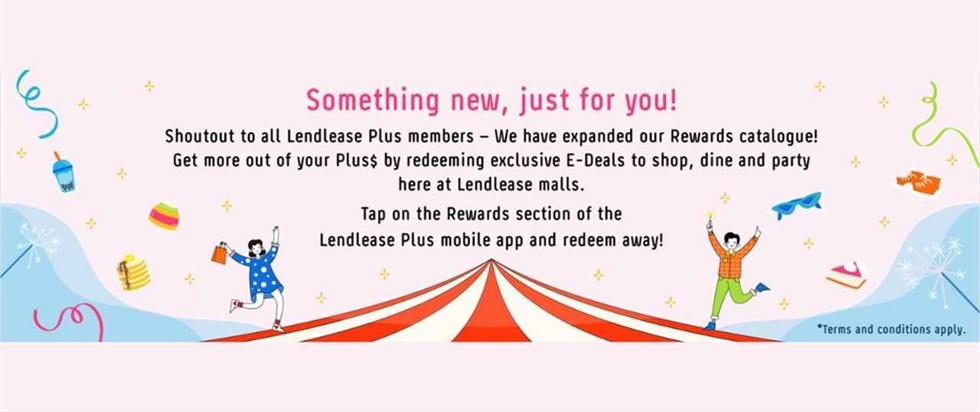"Lendlease Plus members rejoice! We have expanded our Rewards catalogue just for you! Using your Plus$, redeem exclusive E-Deals from participating retailers across our Lendlease malls.