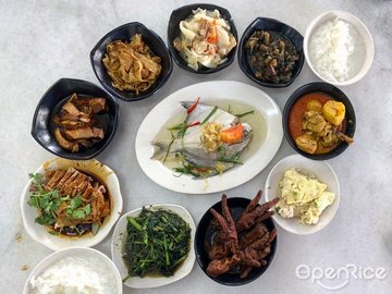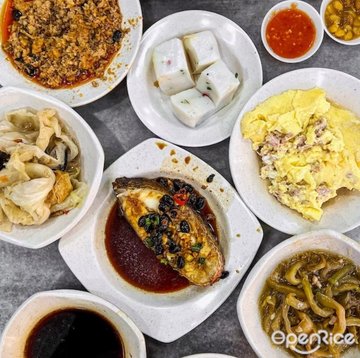 Heng Long Teochew Porridge is a renowned Singaporean eatery specializing in traditional Teochew-style porridge. Patrons can choose from a variety of side dishes, including steamed fish, braised duck, and various vegetable options, all served alongside a comforting bowl of plain rice porridge.
