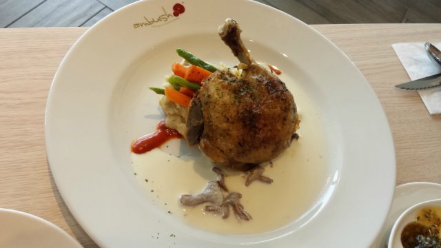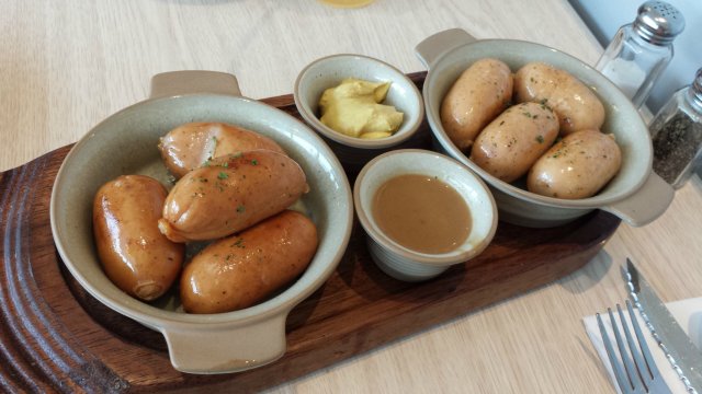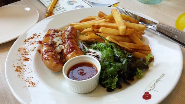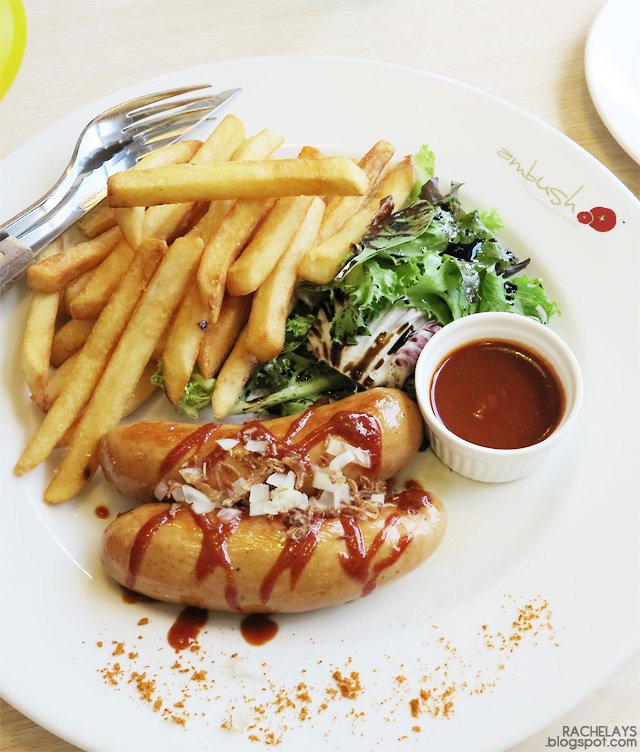 Went for a walk a the new shopping mall westgate and decided to have lunch at Ambush at the JEM which is just opposite westgate. The restaurant have seats which are near window and facing. Garden. Hence the restaurant is bright and comfortable. I ordered set lunch which include a soup of the day that changes daily a main and a drink. I choose to have sausages and fries. The sausage is big and have 2 pieces The fries are hot and crispy while served. I had a coffee instead of soft drink after the main The total cost for this set lunch is $9.90++…查看更多