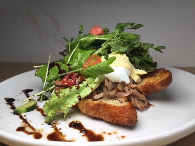 The cafe was located just across the bus stop, second level of the shop house. Just walk up from the stairs from the side.The place was fairly empty when we reached but was packed with a queue by the time we left.Arbite Breakfast ($18++)Scrambled eggs, bacon, roasted chickpea, tomato, and basil salad, pork Cumberland sausage, sauteed locally farmed mushrooms, toasted brioche and pommes noisettesThe serving was quite big, with a bit of everything. Duck and Eggs ($14++)Poached eggs, duck rillette, sauteed locally farmed mushrooms, hollandise, croissant and fresh greensThe croissant was light and crispy, which cut through easily, topped with the creamy duck rillette.Coco Amethyst ($6++)Coconut water, blue pea flower syrup + lime juiceThe drink turned to a lighter shade of purple colour after pouring in the lime juice. The drink was refreshing to have especially when outside was so hot.Fresh Strawberry Milkshake ($7++)Served with whipped creamThe drink was rich and creamy without too sweet.…Read More