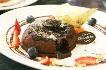 I remembered Atmosphere Cafe & Bistro as the. The entire cafe is going for the atas ‘atmosphere’ with tall plush sofas and heavy luxe curtains, as opposed to their other outlet at East Coast which was more of a open-concept bar.The baristas would vie for starry eyes with unique 3d latte art for everyone on our dining table. Each cup took 10 minutes to arrive, but that’s only sufficient time for us to ogle at it, and take a round of photos.Their extensive menu is made simpler with an iPad ordering system.For appetizers, I would say the Battered Mushrooms (SGD6.80) and Signature Atmosphere Fries (SGD7.80) are good for sharing, while you can safely skip the pastas without missing out much.Overall, the appetizers and mains that we tried were neither impressive nor memorable, which fell short of expectations because their interior design was done very beautifully.Their desserts were significantly better, and something that I would recommend to enjoy at Atmosphere for sure. Molten lava cakes (SGD12.80) are available in classic chocolate or white chocolate with molten cheese core. The Fluffy Snowfall has got to be the most photogenic of all, with soft pancakes stuffed with banana, chocolate or strawberry, though the topping it off with macarons may not be the most pleasing taste-wise.Atmosphere is best for having a cuppa (3d latte art!) and a molten lava cake, soaking in the elegant interior. And a good hideout place just right next to IKEA.…Read More