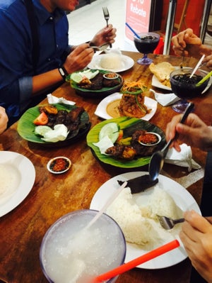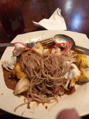 . The staffs there on that day were all Indonesians. As fellow Indonesian, it was nice talking to them :).Left: Teh Botol Sosro - $1.90. Mediocre Teh Botol Sosro poured in a glass.Right: Tea with Milk - $1.90. I ordered wrong. Teh Botol Sosro with milk is not a right combination. Tasted very weird.Ayam Penyet - $6.80 (+ additional $0.90 for white rice). Smashed fried chicken served with fried beancurd, tempe (soy beancake), crispy bits, and burning hot sambal (it was really torturing, me who cannot take too spicy food got stomachache so bad :(). The chicken was well-seasoned, crispy skinned, and the meat was tender. The soft fried beancurd instantly became the highlight of this dish.…查看更多