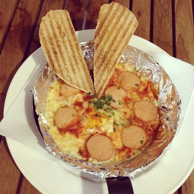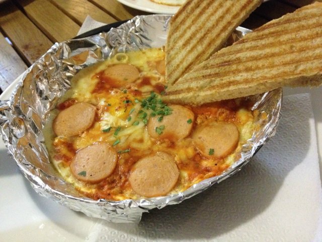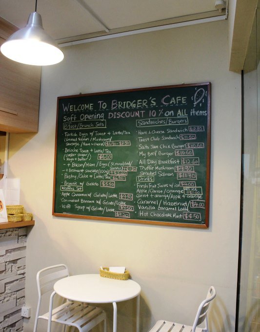 Situated along the river walk of Robertson Quay, Bridger's Cafe is hidden gem as neither many people have heard of it nor been there. Tucked at a quiet corner of Watermark, it was a surprise find for me as I initially wanted to visit Kith Cafe instead that is just next door. However, Kith Cafe decided to close their doors at 7pm sharp on a rainy day and I decided to check out Bridger's Cafe instead.Initially, the owners told me that they are closing soon too but they were very nice to extend their opening hours just for us to fill our empty stomachs. The quaint cafe looks very cosy unlike any other commercialized cafes with seats inside and outside for those who wishes to take in the cool evening breeze by the waterfront. There's a small blackboard inside the cafe too with the menu written on it, giving a very rustic and comfy feel of the entire setting. Looking at it, it allows walk-in customers to have a good gauge of the overall menu here, which is rather affordable. Without further ado, let's find out how the food taste with such an attractive price given the excellent waterfront location!I don't really know how to classify this cafe as they serve a variety of cuisine which the owner says they are good at. The male boss recommended me the Turkish Eggs with Premium Sausages and Mozzarella Cheese ($5.80) which came served in a pan but what's with the aluminum foil? That aside, Turkish eggs actually refers to the ingredients that are topped on it which includes the tasty sausages, tangy tomato sauce and spring onion on cheesy mozzarella omelette. It is served with freshly toasted heart-shaped toast. Yumz! Perfect for an all-day breakfast.