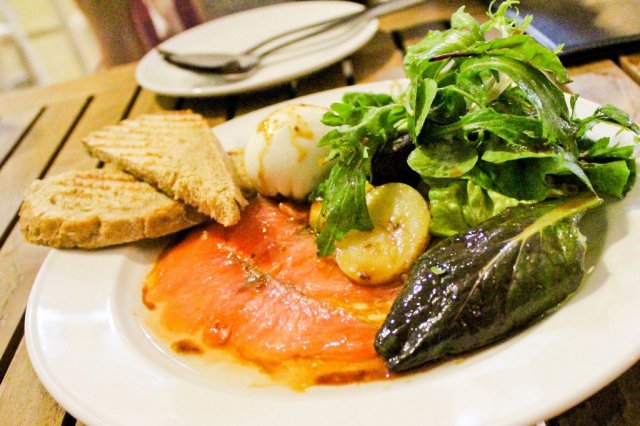 Coming to the Smoked Salmon Carpaccio Salad ($12.50), it was one of the favourite among my fellow diners that night. Thickly sliced smoked salmon slices went so well with fresh crisp greens and toast at the side. Complete with a drizzle of appetizing lemon shoyu dressing, it has a touch of Asian yet keeping it citrus and tangy. Oh, don't forget about the nicely poached egg at the side too which can be requested to be semi-poached for those who like it runny. Perfect light meal on its own!The husband owner of this place told us that the recipe of this Saito San Chix Burger ($14.80) came from a Japanese chef, hence the name "Saito San". The chicken patty of this burger is homemade and stuffed with brie cheese for that, soft, smooth and creamy texture when pan-fried. It was orgasmic when I heard about it as I am a fan of cheese. Although the patty don't look too good on the outside, it was delicious with that rustic home-made touch to the entire burger.