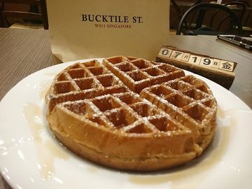 While google – ing a cafe that located nearby my place, i found a cafe situated not far away from my place. Tucked along the Faber hills Apartment - Faber Drive, though seems near from my place but I had a long way of walk to find out this hidden café.The café name “Bucktile” is an anagram derived from Bucket List. Why said so ?They have a Bucket of List for you to write on and paste it onto the Bucket List, as the owner hope that Bucktile St cafe can be one the places to visit. Btw, I have sticked my own :) More details : http://cennds.blogspot.sg/2015/11/cafe-review-bucktile-st-cafe.htmlIf you are lucky enough and prefer to sit on sofa, you can aim the sofa seat at the corner. the sofa was quite cosy enough. It give you a feeling that you are lying down / sitting down at your own comfort sofa at homePLEASE DO NOT BRING ME HOME ! Fine, we won't bring the table number home :) The calendar is adjustable so you can play around with the dice.Earl Grey Lavender Cake.Approaching the staff at the counter to recommend on what cake we should try. I was told to try " Early Grey Lavender " which is nicer as per her suggestion. I wasn't fancy enough with the Cake. The earl grey fragrance wasn't that strong and texture of the cake was not as smooth as per my expectation. Slightly dissapointed with the cake. It is more to instagram purpose.Waffle drizzled with Maple Syrup Original Waffle at the price of $4.40 is reasonable for the simple and plain waffle.Chicken and Mushroom Pie with FriesI would say the Pie is better than the cake. Crispy and puffy fries wtih a generous filling . The filling mushroom was nice with the fragrance sauce. I upgraded the fries to truffle fries…查看更多