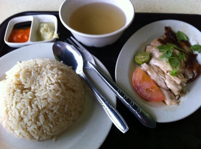 Brought a plate of the roasted chicken rice from this stall during lunch hours. Firstly, the rice is pretty well cooked, has a light aroma, grainy texture, not oily and a slightly darker colour. As for the roasted chicken, only a part of the chicken meat has the skin. Taste wise is soft and tender, and the seasoning sauce is not too salty and goes well with the chicken. The soup has a light chicken bone and a light pepper taste. Price at $3.20 for this plate of chicken rice and I think that it is way too expensive and the portion of the chicken given is also too little. …Read More