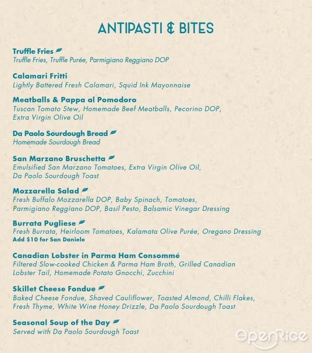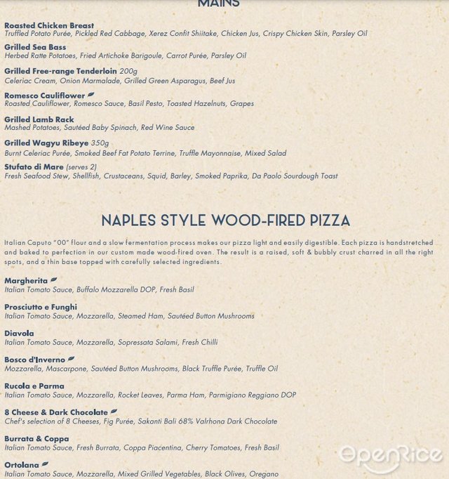 Da Paolo Dempsey (Singapore) Book online to earn Rice Dollars URL: https://s.openrice.com/eKKSB01f6a200 Add.: 8 Dempsey Road, #01-13, Dempsey Rd, Singapore Tel.: +65 6261 3128