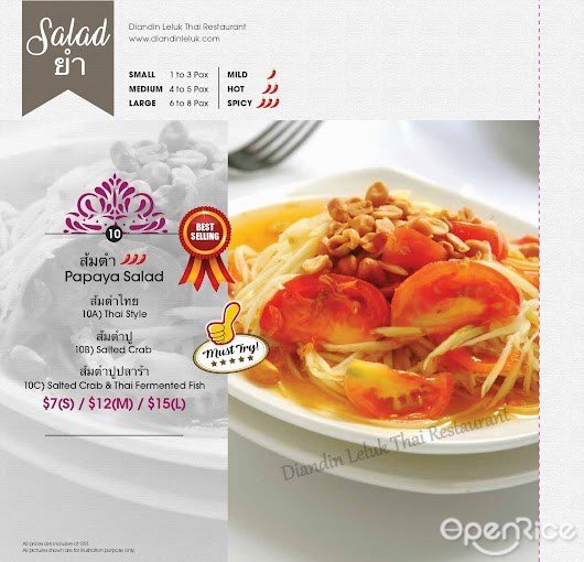 Diandin Leluk Thai Restaurant (Singapore) URL: https://s.openrice.com/eKKSB01qHy000 Add.: 371 Beach Rd, #01-17/18 City Gate, Beach Road, Singapore Tel.: +65 9023 9389
