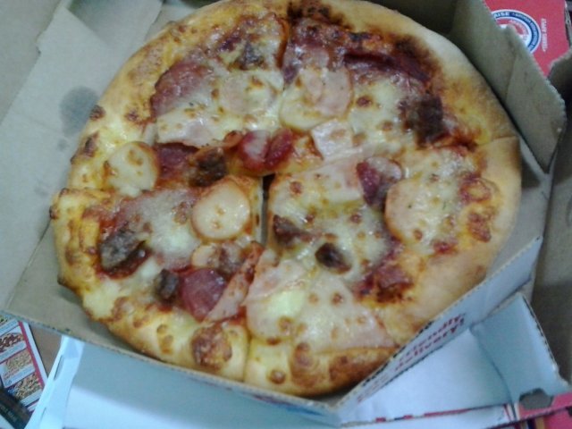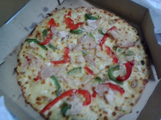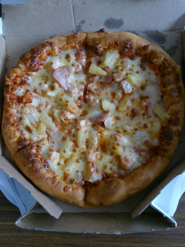 Had the $22 for 2 pizza deal for dinner today. Delivery was prompt and it came pipping hot!The pizzas I ordered were Hawaiian pizza (with classic hand tossed crust) and The Big BBQ (with new york crust).The Big BBQ pizza was nice, with a strong bbq taste, as can be seen by the amount of bbq sauce drizzled on top of the pizza. The crust was just nice, not too thin/thick, hence, providing enough flavor in each bite while filling the tummy. The Hawaiian pizza was aromatic and tasted much better than it looked. Its dull appearance was partially attributed to the fact that the ingredients were embedded under the layer of cheese. As the pizza was made with classic hand tossed crust, it was thicker and chewier, but nevertheless, the crust is nice enough (not greasy) to be eaten even on its own.Overall, it was another enjoyable experience from domino's pizza although I would have love my pizza to be loaded with more ingredients (but for that price in singapore, I am not exactly complaining though!