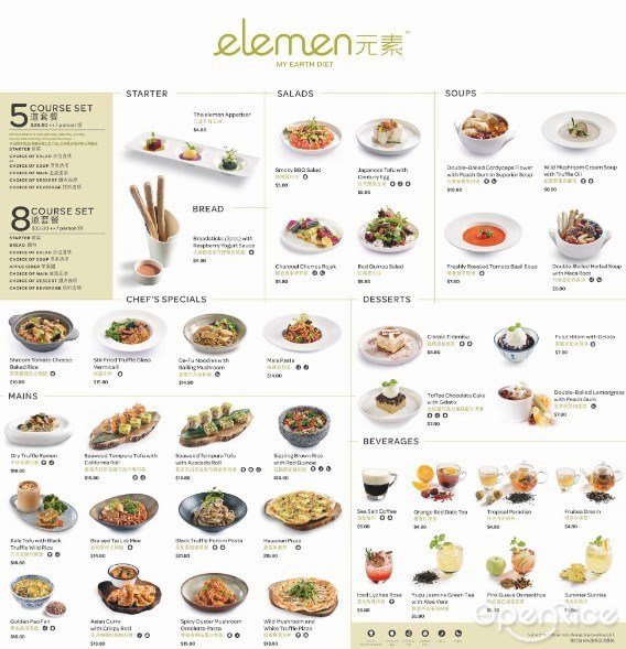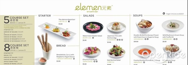 Elemen (Singapore) Book online to earn Rice Dollars URL: https://s.openrice.com/eKKSB01Kie200 Add.: PLQ Mall, 10 Paya Lebar Road #03-13, Paya Lebar, Singapore Tel.: +65 6503 2533