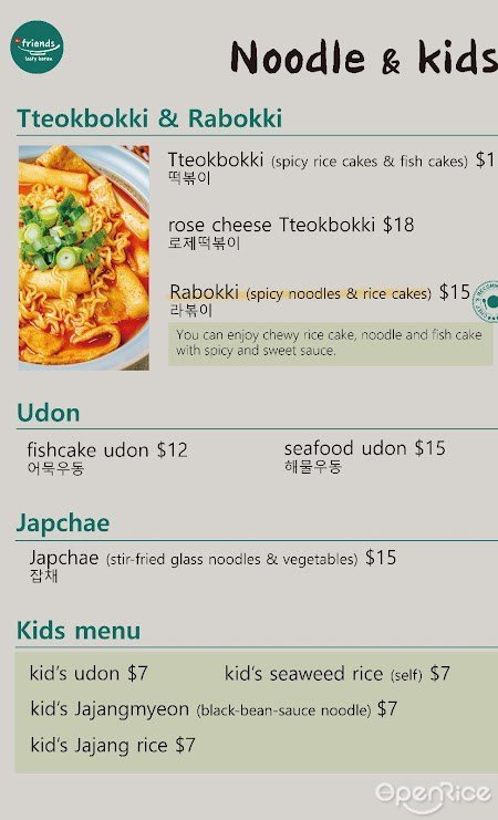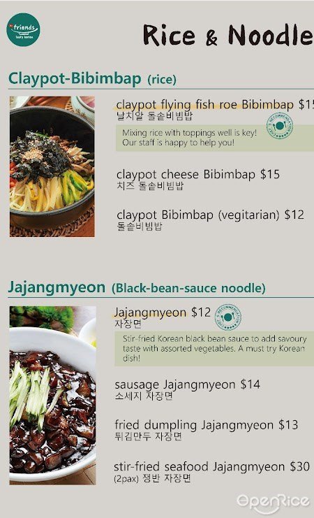 Friends Tasty Korea (Singapore) Book online to earn Rice Dollars URL: https://s.openrice.com/eKKSB01eKi200 Add.: 928 Upper Thomson Rd, Sembawang, Singapore Tel.: +65 9754 2550