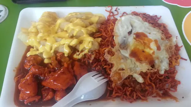 Trademark of this hawker centre I feel is the wok claking sound made while frying noodles. char kway teow stalls, indian food stalls, muslim nasi goreng all adds on to the "symohony"Highly recommended for this hawker ctr is the $5 specials Ibrahim offers. This value set is off the menu item but the regulars usually know it. Its kind of a spin off from the usual mutton chop dish from indian food stalls. My $5 set came with chicken chop (cooked tulang style), cheese fries, maggie goreng and a fried egg. Diet aside, this is one combo capable of satisfying multiple cravings. Served on a square styro plate, the dishes are decked out nicely when presented, no messy mixing of dishes, but 4 small portions of yummy indian delicacy. I would recommend to add a little ketchup to yr noodle goreng though.one thing to mention, they serve you yr diah, I feel its a rarity now for hawker centres.…Read More