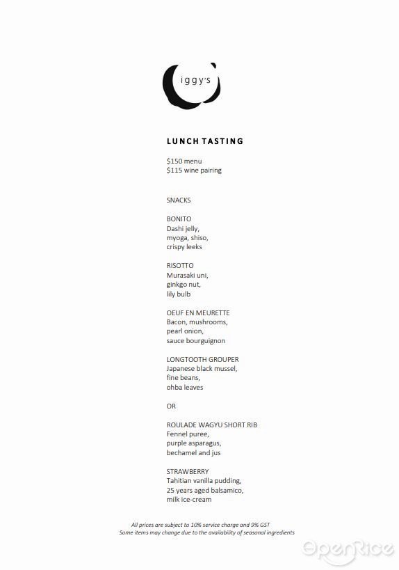 Iggy's (Singapore) URL: https://s.openrice.com/eKKSB01pYO000 Add.: Voco Orchard, 581 Orchard Road, Orchard, Singapore Tel.: +65 6732 2234