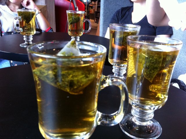 The earlier lunch at Au Petit Salut must have added more than a few kilos to our weight.After trying to walk out the lunch @ Takashimaya for less than half hour, we were exhausted and looking around for a place to rest our weary feet.Jams came into mind and we proceed to the café with much speed & zeal.Ms Quick-Eye found a table for 6 pax in the almost full-house café at the entrance corner (phew!) and we gladly sank into the cushioned seats.We went to place our orders at the cashier separately.Upon returning, there’s were 5 similar cups on our tables. We all ordered the same Southern Mint Tea!!