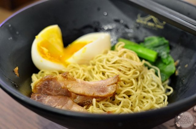 Ba Mee Kiao, Moo Dang & Kai Tom (Dry), Egg noodles with dumpling, charshu & lava egg | S$7.20/-