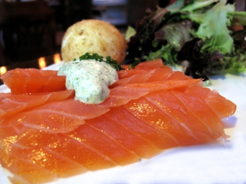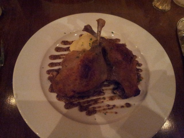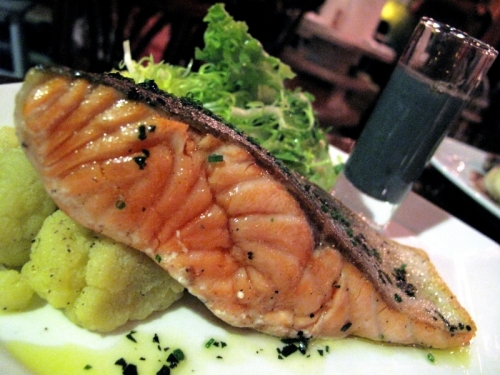 It has a very traditional French bistro feel. Lights were dim and appropriate for a romantic dinner, yet not overwhelming. I had read up earlier that portions were rather huge so it was recommended that we order 1 entree 2 main and 1 dessert but we would like to try more varieties so we ordered 2 entrees, 2 main courses and 1 dessert.Oignon Farci aux Noix de Saint-Jacques Grillées et son Velouté de Maïschargrilled Hokkaido scallops served in a salt-baked onion, with a corn velouté and toasted pinenutsThe scallops were huge and tasted sweet and succulent. They also went well with the corn veloute. The onion tasted slightly sweet and had no pungent taste or smell to it. Caviar du Pauvre (Poor Man's Caviar) verrine of eggplant and garlic purée, chicken liver mousse and Pernod crèmefraîche, served with chargrilled breadIt tasted nothing like caviar but the combination was good. We both felt that it would be too overwhelming to finish this dish by one person. This is good for sharing. We ordered this because of the many good reviews but I was a tad disappointed as this dish did not manage to win me over.Saumon à l'Unilatéral et sa Soupe à l'Encre de Seiche pan-seared salmon fillet (served rare in the centre) with squid ink velouté and spinach fondantIt was creative to serve salmon together with squid ink. The pair went well together. This was supposed to be served with spinach fondant but somehow they substituted it :(.. with asparagus and I really don't know what those soft crumbs are. I didn't like them though. Steak Frites chargrilled beef steak with pink peppercorn beef served with pommes frites and mesclun saladClifford ordered the grass-fed Australian Tenderloin. It did not look as fantastic as it tasted, but boy it was good. What surprised me was how good the fries actually tasted, it was crispy and will leave you wanting for more. The steak was extremely juicy and thick, yet had a consistent doneness throughout.Pastilla à la Pistache et Chocolat Noir warm dark chocolate ganache and pistachios in feuilles de brick pastry, served with pistachio crème Anglaise and vanilla bean ice creamOn recommendation of the waiter, we ordered this. I love this especially the brick pastry! It looks like a po piah isn't it? One would be in for a surprise when you cut the pastry open. The pastry was very crispy and it went so well with the chocolate ganache. The pistachio creme tasted great as well. The portion was just right after a heavy meal.Overall, it is definitely more worth it to get the prix fixe. A la carte will already cost you $40 for a main and $18 for a dessert or an entree. Do visit http://bit.ly/Wg2U4W for a complete review with photos :)…Read More