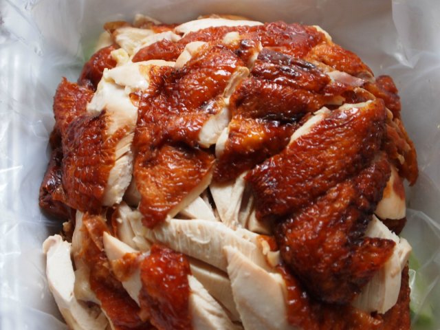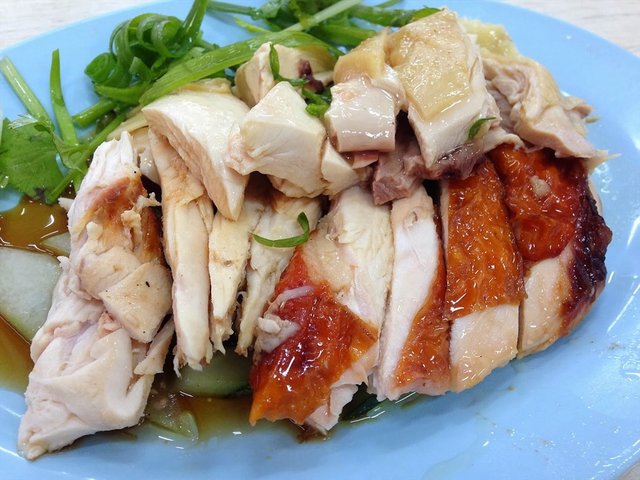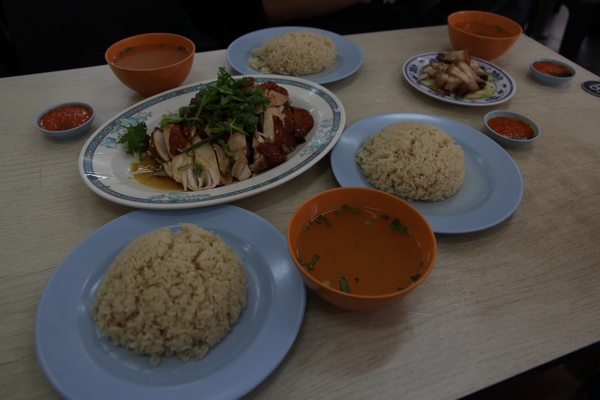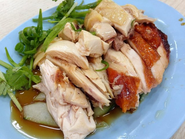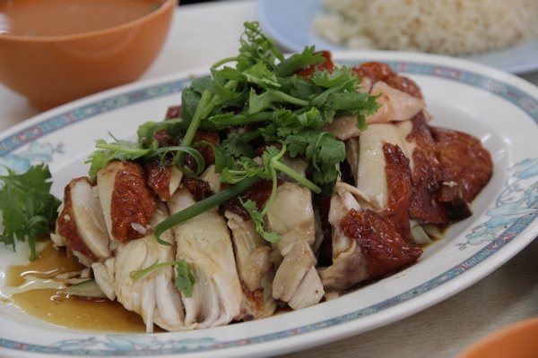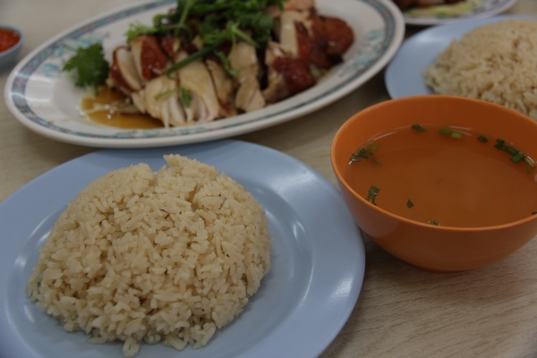 Leong Yeow Famous Waterloo St Hainanese Chicken Rice 亮耀馳名四馬路海南鶏飯 is a famous chicken rice stall tucked away at a corner of Waterloo centre in a coffee shop. The nearest MRT station is Bras Basah (Circle Line). During meal times, this stall nearly always garner the longest queue in the coffee shop. Steamed and Roasted Chicken Rice $5.70As I could not decided whether to order steamed or roasted chicken, I decided to order both. Hence, my chicken rice cost $5.70.The chicken rice was fragrant and not too oily. However, some parts of the rice were a little too dry.Steam and Roasted ChickenOnce the chicken meat are cut onto the plate, they are drizzled with soy sauce and I suspect sesame oil was added too. Steam and Roasted ChickenThe Steamed Chicken with its succulent meat was decently executed. As for the Roasted Chicken, I thought it was even better executed. The exterior of the Roasted Chicken was yummilicious. Slightly crisp yet chewy skin, it was immense with aromatic blend of seasoning and flavour. Very addictive. The fragrant and flavour penetrated into the meat. If certain part of the meat was less tough, this would have been perfect!As with every chicken rice, the chilli sauce is a must! The chilli sauce at Leong Yeow was addictive. Very tangy and spicy. It complemented well with the chicken meat. Not for the fainted hearted, especially if you are one who can't take spicy food.…Read More
