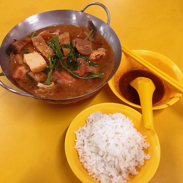 first time trying this loh mei with my family for dinner, this cost about $4, and there's also the $6 or $8 set, it consists of pork, pig skin, chicken wing, veg, tau pok and other etc with fermented bean curd sauce. rice cost extra of 50cents. heard from my parents that this is like one of the last stall in singapore, really dunno if its true or not, but at least you can find it at chinatown (:if you are eating this dish with a group, advice from my dad is to buy individual portions, the $4 set instead of the $8 one, cause they will give lesser in the $8 set compare to buying more $4 set itself