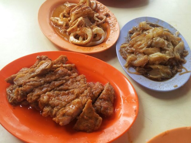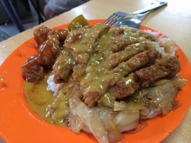 See my full reviews & photos at = https://chefquak.com/2016/05/28/really-shiok-4pax-curry-rice-lunch-loos-curry-on-27may2016/my OPS friend bought lunch at loo’s curry on 27.5.2016. ^^he bought up whole stall, 6 dishes for 4pax!& we had prawns, chicken, sotong, pork chop, fish head & veg!i am recently with my RO friends on 22.3.2016.we had 8pax & ordered about the same food (which was enuf la)…lol!pork chop is a must signature food for hainanese curry rice (next to the curry itself i guess…lol).i not particularly keen on tonkatsu but this went very well with the curry.the curry prawns was a surprise for me.usual in these chai pun 菜贩 type stalls, or even in zi char stalls, don’t expect very fresh prawns.this one was very good, very fresh!curry sotong always good. we ordered that last time also.(just read on straits times today 28.5.2016 that the word sotong is now officially included in oxford dictionary!)chicken curry was very so so, in fact one of the poorer ones i have taken eg the hoower food court cheap curry rice’s curry chicken a lot better& of course the geyland serai stalls like sinar pagi nasi padang better than both.the curry itself though always good!black beans fish head was ok, but these kind of dish have to take at zi char stalls like kok sen at keong saik street la.curry veg was good but usual.friend went to order vegetarian ngoh hiang some more. all items very tasty especially the one with mushrooms stuffed inside.i had to finish almost all the rice & not eat dinner, and after lunch we went for durian some more.the curry rice was just S$40 for 6 dishes include prawns, we think only because the stallholder “ah” with my friend.…Read More