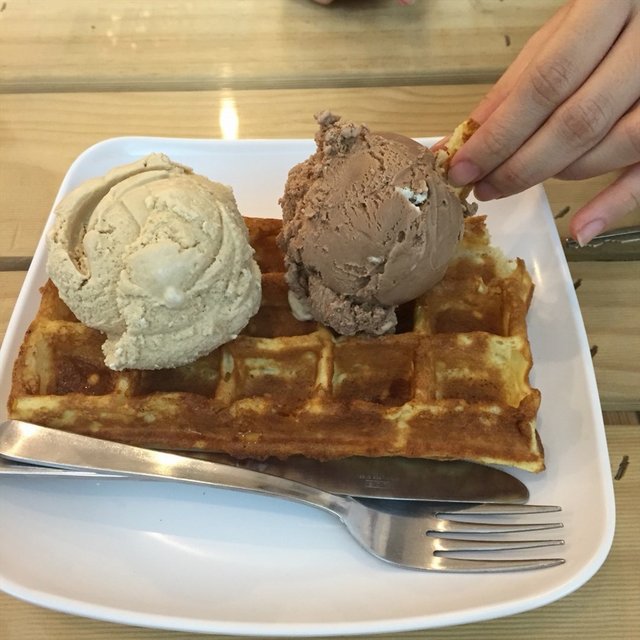 Great ice cream here! Creamy with rich flavors! None of that fake additive tasting ice creams. Flavors change from day to day, be sure to call them up or check their Facebook page for their flavors. Liked the grape yakult yogurt, root beer float and pineapple tart. White choc speculoos & yuzu are ok. Didn't really like their milo fudge cake and green tea though. Waffles do take some time as they are made fresh! Love their cones too…Read More