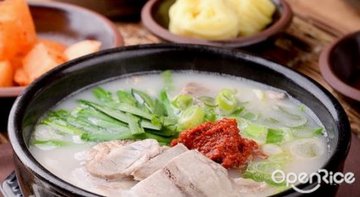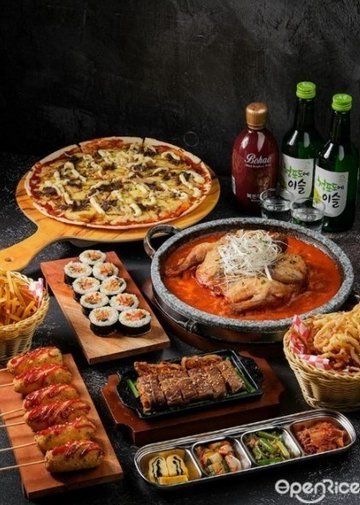 Ham & Vegetable Kimbap / Fried Octopus on Hotstone / Sliced Braised Pork Knuckle