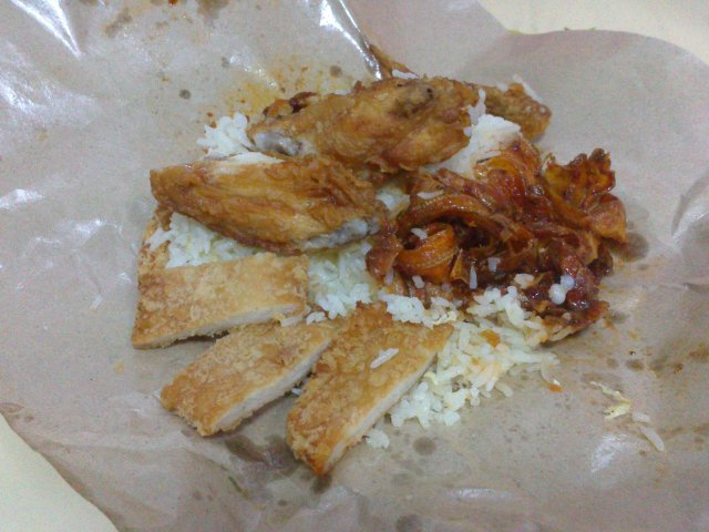 The Nasi Lemak rice which costs $0.80, didn't stick together and was fragrant.Chicken wing $1.40: Chicken wing is fried till very crispy, not covered with greasy and the chicken was fresh because you can easily separate the meat from the bone!Ikan Bilis $1.50: Large ikan bilis is another ingredient you must add in a plate of nasi lemak! It was fried with perfection covered with sweet chilli sauce! so yummy!Fish fillet cake $1.20: The last item, ok it was a normal piece of fish cake.It costs$4.90 for the whole dish. …Read More