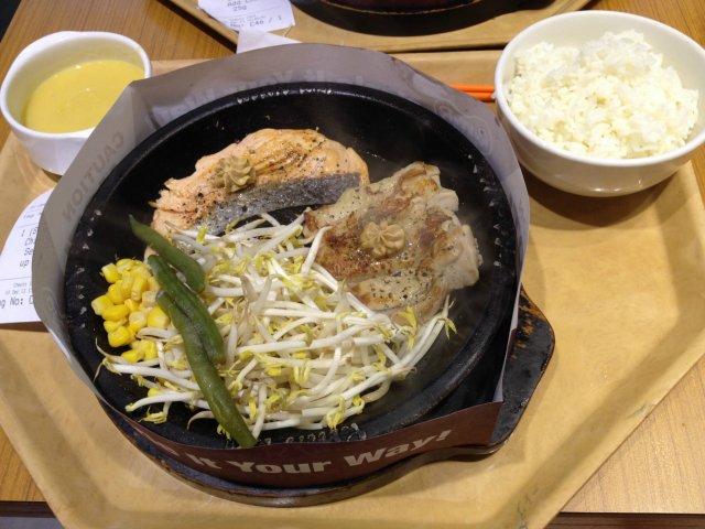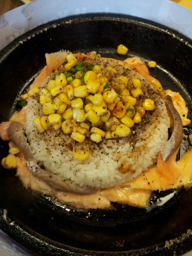 Not really first timer but possibly first time at SMK Hub. Location is 1st level near entrance facing McDonald. This restaurant is quite roomy with ordering from long queues. Ordered chicken Katsu curry rice < New menu > and Salmon pepper rice. The waiting time is quite fast for Salmon. Hot plate and sound effect already proofed is steaming hot and adding soy sauce on toppling made a perfect pair. Mixing the rice and feel so beauty inside. Opt for more corn and cheese if you are cheese lover. Here come the Chicken Katsu curry rice. It serve curry separately on a metal scoop. The curry smell shiok and pouring on TOP the rice. The strong curry smoke just rise up around the hot plate and look delicious. The chicken Katsu looked slightly thinner than normal. Overall served with corn and mushroom. This set also accompany with mesh potatoes with curry toppling. Not bad for starter. It is a perfect combination that should be miss for this time. Eating in this place is better than foodcourt as sauce and pepper can be taken easily. If the air con can be improve will be better. Enjoy !!!…查看更多