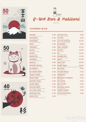 Q-WA Bar and Yakitori (Singapore) URL: https://s.openrice.com/eKKSB01p4a200 Add.: 73 Circular Rd #01-01, Boat Quay, Singapore Tel.: +65 8086 0905
