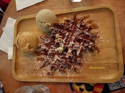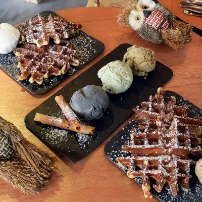 Waffle with Sticky Salt Caramel and Cookie Jingle