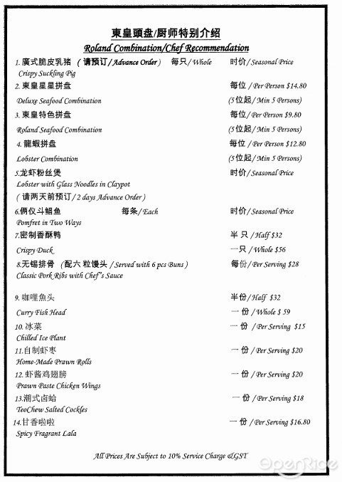 Roland Restaurant (Singapore) URL: https://s.openrice.com/eKKSB01VLm000 Add.: 89 Marine Parade Central, #06-750, Marine Parade, Singapore Tel.: +65 6440 8205
