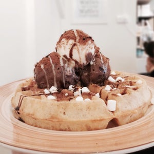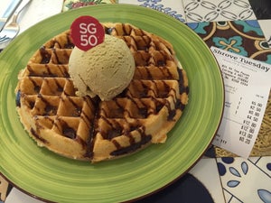 Located within 5 minutes walk of Braddell mrt is this cafe, located under a block of HDB flats. It has a very simple outlook, of white washed walls and sign board. But the minute you walk in, you are greeted by the variety of ice cream and rainbow cakes that they offer.No pork or lard :) Who knew you could display cakes alongside ice creams in the same fridge? COOL idea. Nonetheless, we got ourselves a waffle with 2 scoops of gelato. Roasted Pistachio which was a premium flavour so $2.50 + $0.80 and Rocher which was $2.50.Waffle with Roasted Pistachio and Rocher Gelato $10.80And here it was, the leaning tower of gelato! I really enjoyed both flavours of the gelato. I just couldn't get enough of it. The roasted pistacchio was my favourite. The rocher was very chocolatey and creamy as well. Both weren't over-poweringly sweet, and that's why I loved it.Look at the thickness of the waffle. It was so fluffy and awesome!! Definitely coming back for more waffles!Here's why their waffles are so fluffy! Because they use yeast raised batter and each batter takes 3 hours to ferment! The fermentation processes releases C02 making their waffles light and crunchy!Take note employees of the above companies, you get 10% discount M-F 12-7PM :)All in all, a great place to chill out even though I wasn't able to connect to their wifi for some weird reason.…Read More