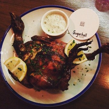 Full review's at http://thehungrybunnie.blogspot.sg/2015/11/invited-tasting-revisit-sugarhall.htmlSugarhall's fare is fantastic, with every dish a slamdunk, and service is upbeat, knowledgeable, and gregarious. So it's quite shocking to find the restaurant far from a full-house on a weekend night.I have a supposition: the fact that the restaurant is 2 (or 4) or shades too dim may cause diners to think of Sugarhall as a watering hole that serves yummy nibbles, instead of a restaurant that serves superb cocktails. I would, audaciously, suggest that the restaurant brighten up (a lot) during dinnertime, and only turn down the lights (and up the music) sometime during last orders. That may lend some credibility to Sugarhall being a restaurant first, and cocktail bar second.We had:1) Short Neck Clams ($18): fat and impossibly sweet clams, swimming in a broth spiked with birds eye chilli for a punchy heat. Delicious to the last drop.2) Broken Pork Sausage ($14): wonderfully textured, complemented by the charred cabbage slicked with bonito butter. It would be awesome if the cabbage could be offered as a side dish.3) Tasting of Beef ($76): extremely well-priced, which I agree. Incredibly juicy, and intense with flavour, every mouthful was heady with smoky singe. We ate these unadorned, without the accompanying chimichurri sauce which was laced with parsley.4) Whole Spring Chicken ($32): best roast chicken we've had in a long while, even if the presentation of the head and feet might seem pretty gross to some. Brined in rosemary, this was luscious and succulent. So delicious, in fact, the cucumber yoghurt dip was rendered redundant.5) Burnt Carrots ($12): beautifully sweet with an orange-ginger glaze and cranberry compote…Read More