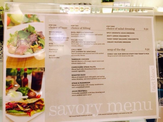 Located right across starbucks is Tart Blanc, a hole in the wall shop but with a great variety of tarts!They have 4 tables and a seating capacity of 10-15. So it's more of a takeaway place.Their lunch promo is definitely very appetizing!As I had visited here in September, I knew their tarts were good. I'm glad to see that the costs of the tarts haven't risen. They sell a greater variety of tarts now.My previous favourite was the matcha milkshake so this time I tried the blood orange matcha. It had a soft orange cake sponge on top and a matcha cereal tart crust on the bottom. The orange was sour and the gelatin like top coating and the green tea cereal were sweet. An interesting blend of tastes! But I think the green tea milkshake being all sweet is still the winner in my heart. This blood orange matcha tart had a best seller tag on it though. Definitely coming back to try more tarts!…Read More