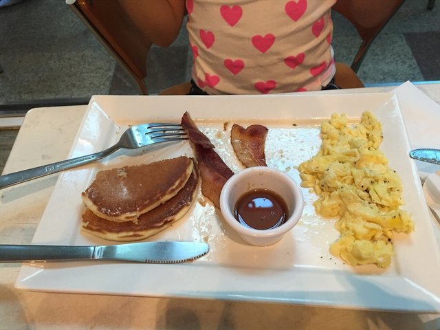 Pancake, scramble egg and bacon