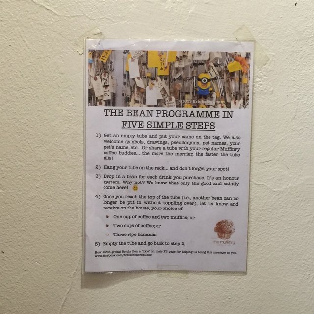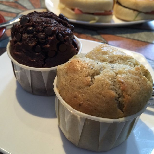 Some years back someone bought me some muffins which made me started on a search for the location of the place with just the name.Have always wanted to patronize this place to try out the other food that they offer which I only managed to do so a week ago.Upon entry, we were greeted by smiley staff who didn't mind me taking photos of the shop even before we make our order.Like other shophouses cafes, there are more seats available on the 2nd & 3rd level.Something interesting to note is that they have a rewards programme called "The Bean Programme". Interested? Participate in five simple steps.Now we are ready to attack the food. Let's take a look at the menu.Other than their well known muffins, other items that you can find in their menu includes sandwiches, tarts, homemade pies & quiches.All items are available in ala carte order or you can opt for a set. The set includes a muffin and a drink (except smoothies/alcoholic beverages) of your choice. However you can top up S$2 for a smoothie.I decided to try their sandwiches but there are so many varieties to choose and all looks tempting. So I ordered the Three Sliders and opted for a set.The flavours I chose were:1) Smoked Salmon2) Ham & Cheese3) The Char SiewThree Sliders (Ala Carte S$10, Set S$16.50)1) Smoked SalmonSalmon was fresh and combined with cream cheese making this simply delicious.2) Ham & CheeseThis was rather normal with no surprise factor.3) The Char SiewA unique variety in the menu. Meat is tender and overall combination is yummy. Just that it doesn't taste so much like char siew.Matcha Latte (Ala Carte S$4.50)My beverage choice for the set. This is really awesome. Strong matcha taste with just the right portion of milk.My friend loves quiches and the quiche of the day happens to be her favourite - Spinach & Mushroom Quiche. So she ordered the quiche and opted for a set too.Spinach & Mushroom Quiche (Ala Carte S$5.50, Set S$12)Quiches are known to be creamy and cheesy. The ones here are the same with the difference that it will not make you feel too greasy after eating it.Latte (Ala Carte S$4.50)A coffee lover's choice. Strong aroma and coffee taste. Coffee lovers must definitely try their coffee when visiting.As I have mentioned earlier, muffins are included in all set orders. Though they have sweet & savoury muffins but we opted for the sweet flavour as this is our aftermeal dessert.Double Chocolate and Lavender Lemon Muffin (Ala Carte S$2.80)Double Chocolate MuffinBaked with valrhona chocolate and two other types of chocolate chips. The muffin is moist and the chocolate taste makes this a chocolate lovers must have.Lavender Lemon MuffinAroma therapy!? Chose this as I find this flavour quite special. Not a flavour that many can appreciate as the lavender is a little too overpowering.The place to visit for chilling out with friends and enjoying a cuppa with some pastries.…Read More