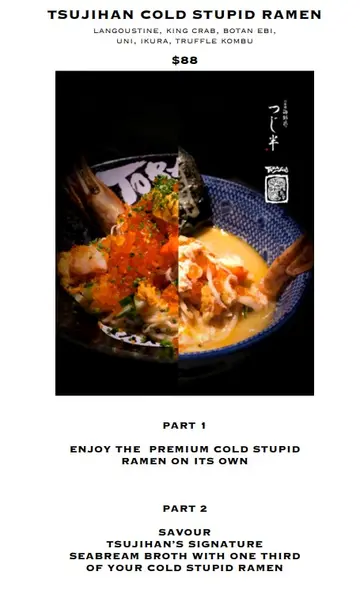 Tonkotsu Ramen / Lobster Dry Ramen with Claw Cream Croquet / Torasho Pork Dry Ramen / Uni & Ikura Tsukemen