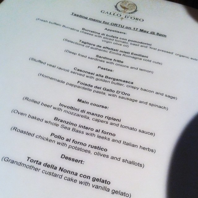 *Katherine and I were in the vicinity, and decided to grab something to eat. Unfortunately most of the eateries were packed, so we decided to settle for Italian fare at Trattoria Gallo D'oro. We both ordered the set lunch from the friendly wait staff, and starter of bread with olive oil was served to us while waiting for our food.We started with a Pumpkin Soup (Zuppa) - it came in the form of an orange, translucent broth instead of the cream of pumpkin soup we were expecting at most Italian restaurants. It tasted sweet, and there were pumpkin bits; I had to douse mine with a lot of pepper.I had the Pasta with Clams (Vongole) that was disappointingly bland. Usually vongoles come with a lovely white wine sauce or even if cooked in cream, there would be some taste to it. Unfortunatelyt for this, I just could not detect any flavor so I was chewing on the hard pasta and tasteless clams, adding lots of Tabasco sauce to it for flavor.*Katherine had a Parma Ham Pasta and while this had more flavor to it, paired with rather succulent pieces of ham, she also thought that the pasta was a tad too hard. It was kind of dry as well, without much gravy to it.The last course was Hot Tea, which could not go wrong. It was comforting to have a cup of hot, sweet tea after lunch. The entire set lunch cost around SGD$22.00 each.We did not enjoy our lunch here at all, and would not be back for more. For full review, please visit: http://thearcticstar.blogspot.sg/2014/11/lunch-at-trattoria-gallo-doro-italian.html…Read More