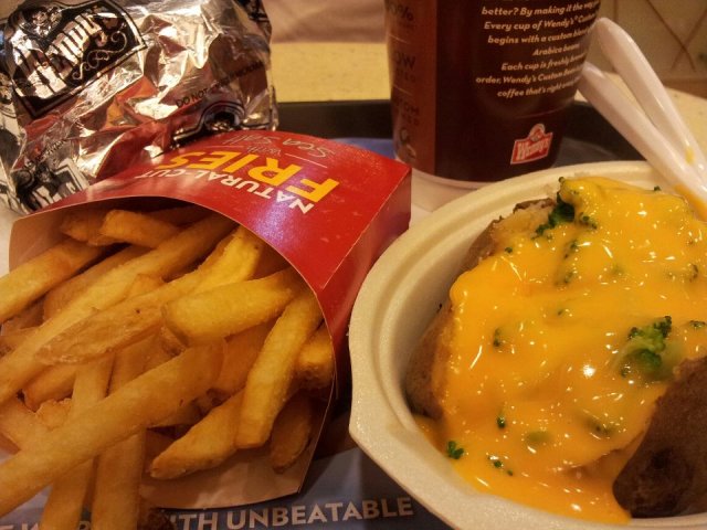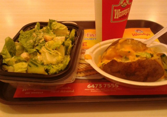 Settled my late lunch at Wendy’s, it was known of its specialty sandwich. Self-service basis as most of the fast-food chain did, the clean comfortable surroundings and fast efficient service were pleasant. I queued, placed order and sat down to enjoyed, waiting time was acceptable. It was opened all-day, 24 hours daily.Burger was filling and juicy, definitely a premium quality patty in bun. Nothing much to describe for fries, golden deep-fried finger food was undeniably crispy and tangy. Talking about plate of baked potatoes, it was the classic side dish. Slow-baked until soft mushy in the oven, every scoop with existence of Broccoli was cheesy buttery fragrant. Cost was below $10.00, not too expensive.…Read More
