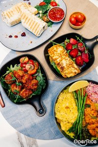 "Omu" Souffle on Tomato Rissoto with Shrimp & Broccoli