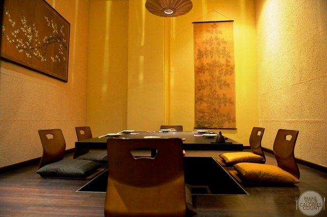 There are three private tatami rooms which can seat up 8 to 10 persons with two of the rooms being connected by a movable sliding panel. Perfect for a private social gathering or even a dinner with business associates.