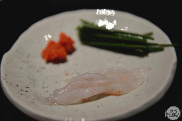 As we enjoyed the Tiger fugu, the filet mignon of puffer fish, it should not be neglected that its distinctive flavours come with its unparalleled concentration of toxins and the shirako is among the most potentially fatal parts of the infamously poisonous fish. Also known as the sperm sac, I was rather sceptical in trying it but curiosity got the better of me and I eventually took a portion, which to my pleasant surprise, was one of the finest delicacies tasted. With a rather elastic texture such as squid on the outer layer, the inside had a lightly mashy feeling which quite honestly one would form either a love or hate relationship though it went well on my palate as the acidity from the lime and salinity from the sea salt balanced the flavours harmoniously.