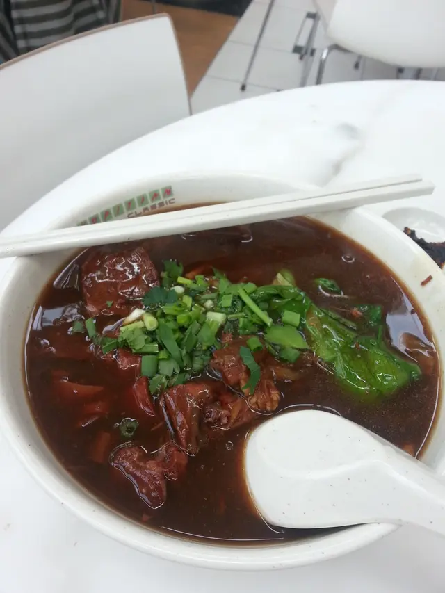 The bowl was served hot as the soup, I believe was heated up behind after inserting the beef strips (which didn't taste particularly fresh). The soup was very tasty, but halfway through the noodles, the sodium got to me and I couldn't have anymore.
