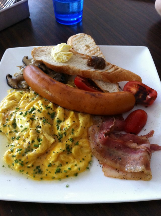 TCS breakfast set is the safest choice and pretty filling i must say. The portion is a little too huge for me. You can choose from sunny side up, scramble egg or omelette. I love scramble eggs and this is really good. I didn't really like the bread as it came a tad too soggy and soft. Sausage was ordinary as well as bacon. It wasn't crispy as i'd like it to be. Overall i'd say give this a miss.