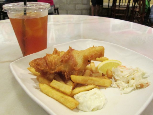 I am having fish & chips and iced lemon tea. The tea does not have lemon taste but taste not bad. The fish is quite fresh and crispy, but abit too oily. The coleslaw is a bit too dry.
