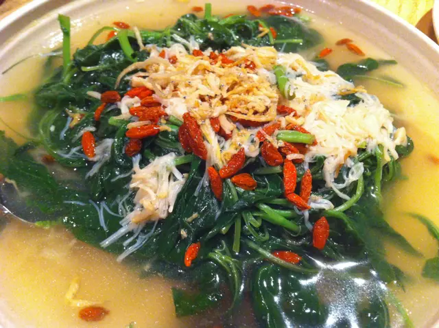 I love how the restaurant is always generous with their small fish, dried scallops and wolfberries toppings. The clear soup was tasty and not too salty. Spinach was sweet and fragrant. The toppings added a well-rounded aroma to lift the taste of the vegetable.