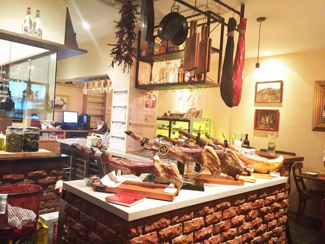 The restaurant is turning itself to a Jamon Bar, which is unheard of in Singapore as a leg of jamon cannot keep for long once it is been used. It served 5 different types of Jamon at the counter, with the oldest about 5-6 years old to the youngest about 18 months old and each costing about an average of $8000. The jamon has to be craved as flat and straight as possible and staffs have to be trained to do it.